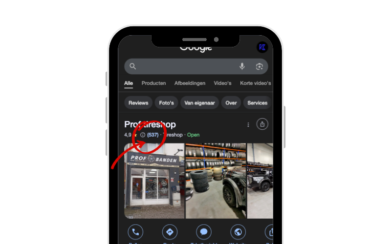 De Google review card wordt vooraf ingesteld op jouw Google Bedrijfsprofiel en is meteen te gebruiken.